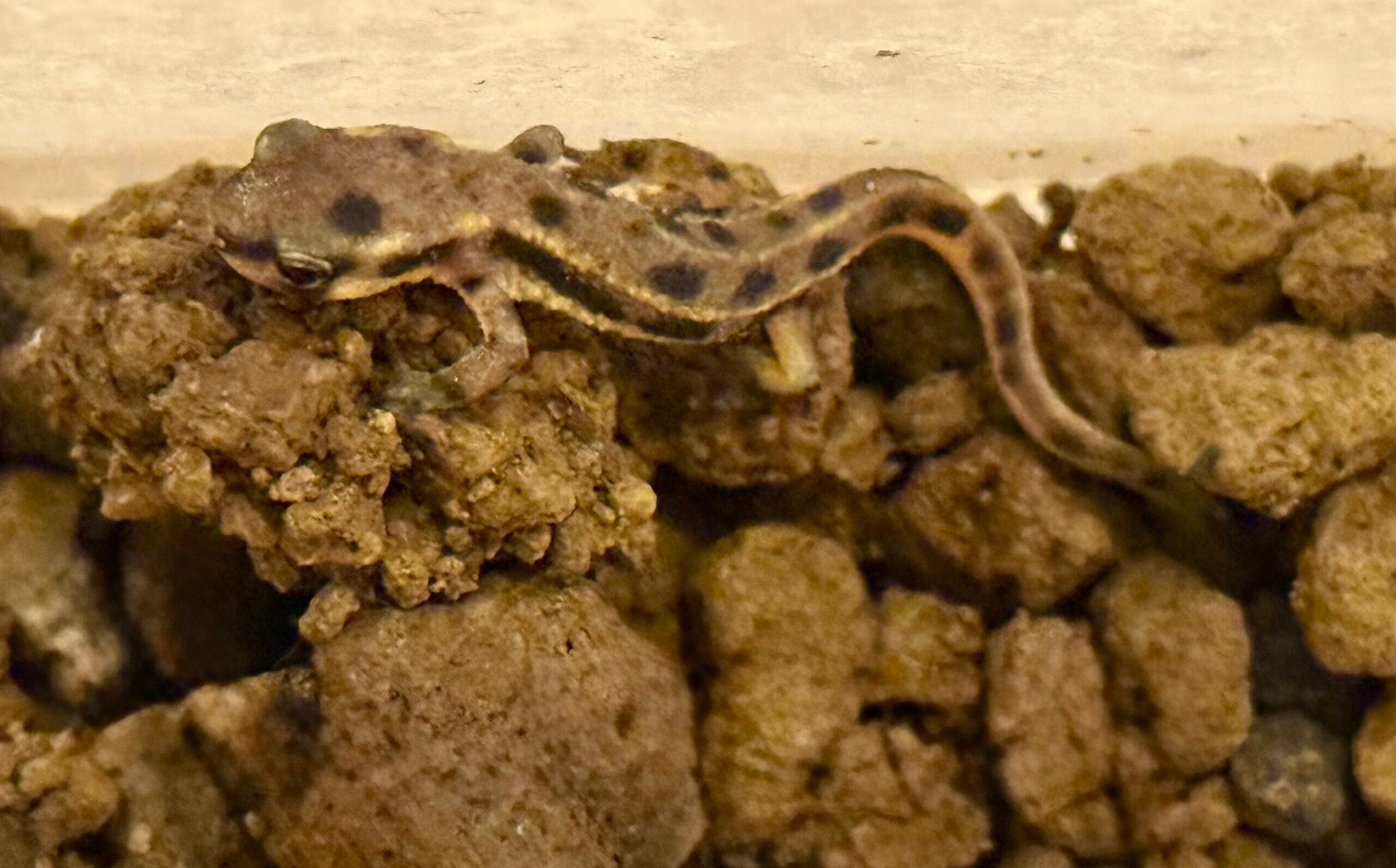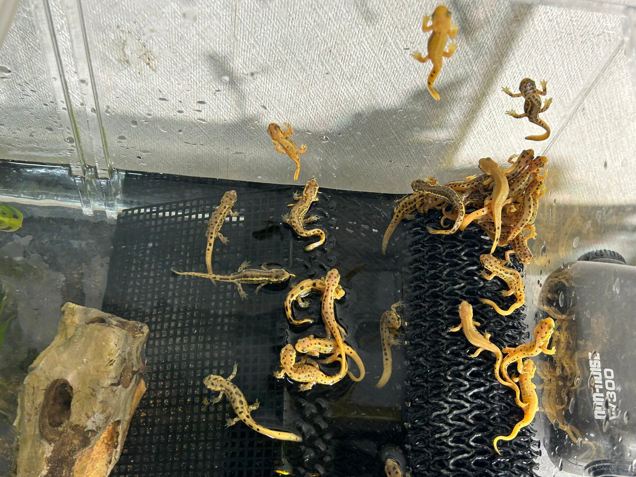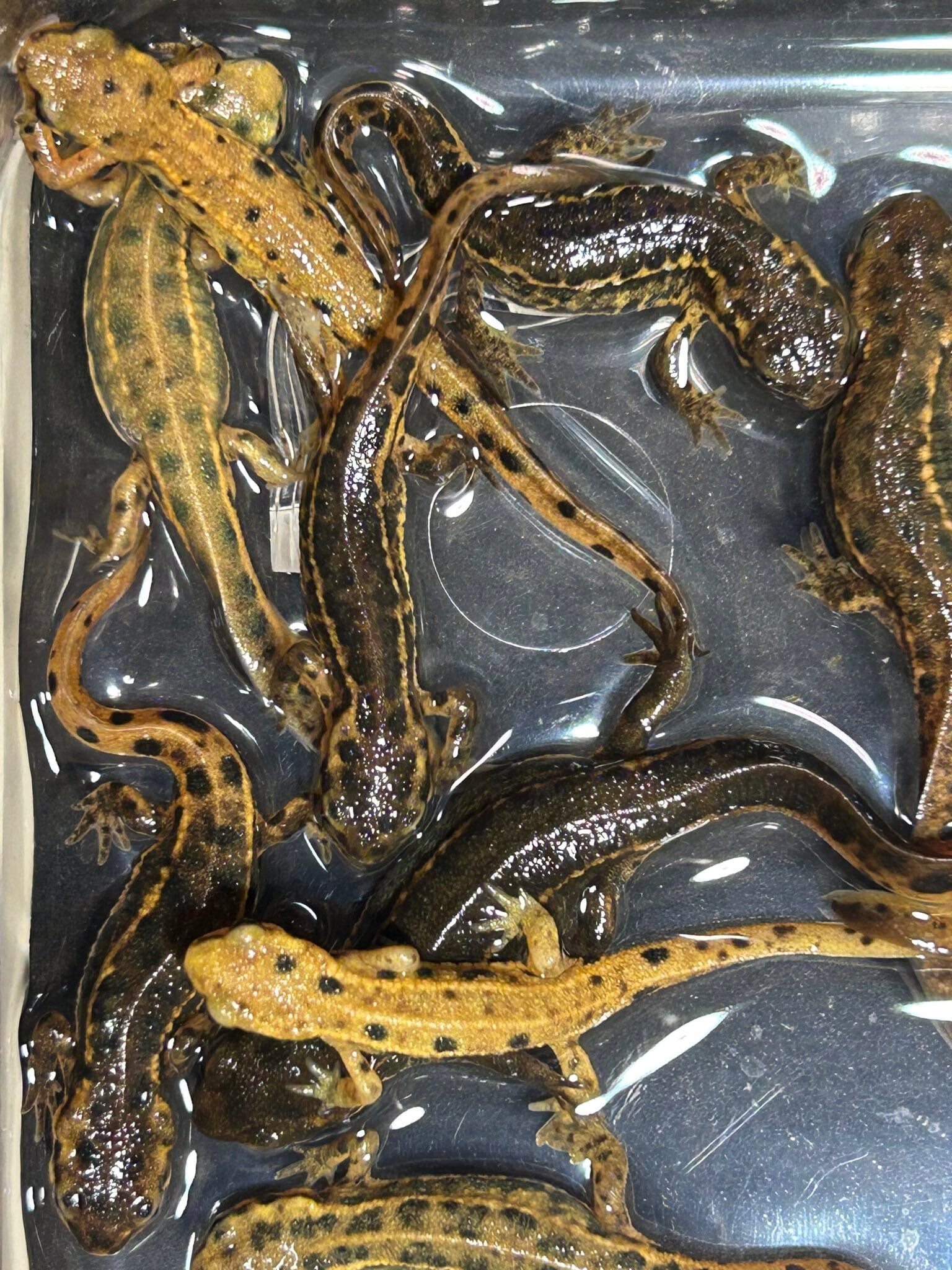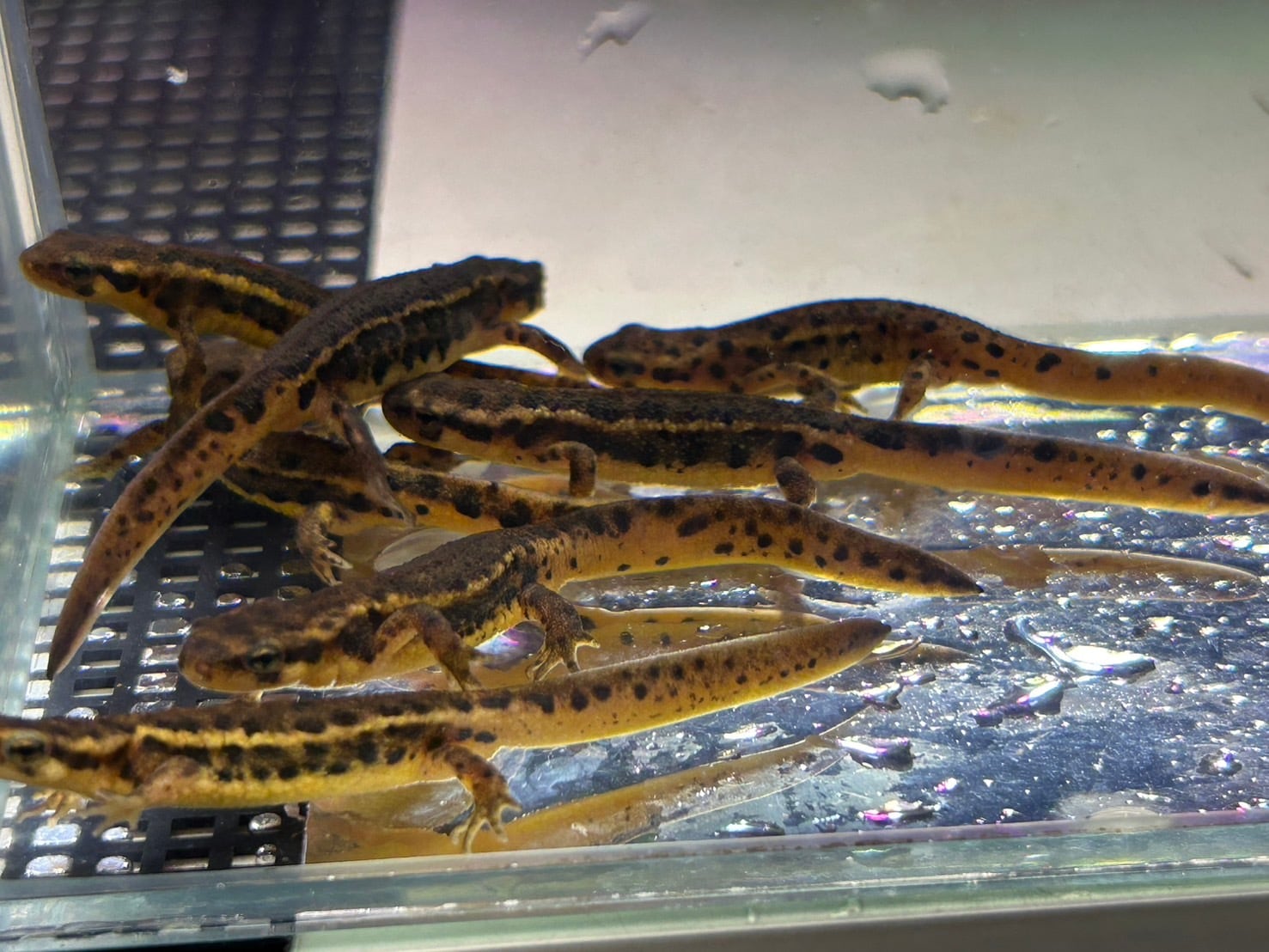 アカハライモリ色彩変化 ピンセットからイトメ食べます